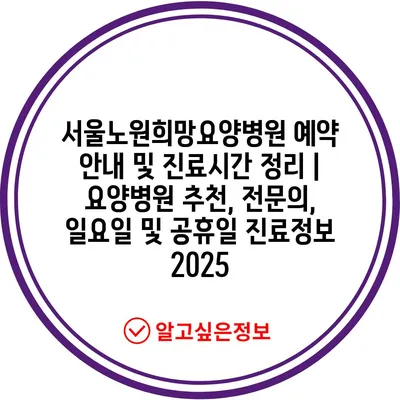 서울노원희망요양병원 예약 공지 및 진료시간 정리 | 요양병원 추천, 전연락, 일요일 및 공휴일 진료정보 2025
