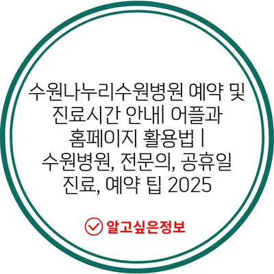 수원나누리수원병원 예약 및 진료시간 안내| 어플과 홈페이지 활용법 | 수원병원, 전문의, 공휴일 진료, 예약 팁 2025에 대해 알아보겠습니다.