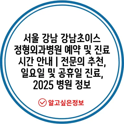 서울 강남 강남초이스 정형외과병원 예약 및 진료 시간 공지 | 전연락 추천, 일요일 및 공휴일 진료, 2025 병원 정보에 대해 자주 묻는 질문 TOP 5