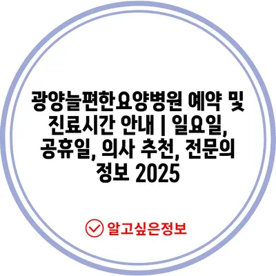 광양늘편한요양병원 예약 및 진료시간 공지 | 일요일, 공휴일, 의사 추천, 전연락 정보 2025