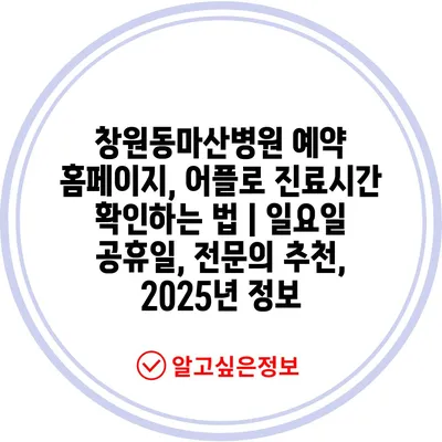 창원동마산병원 예약 홈페이지, 어플로 진료시간 확인하는 법 | 일요일 공휴일, 전문의 추천, 2025년 정보
