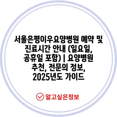 서울은평이우요양병원 예약 및 진료시간 공지 (일요일, 공휴일 포함) | 요양병원 추천, 전연락 정보, 2025년도 설명서