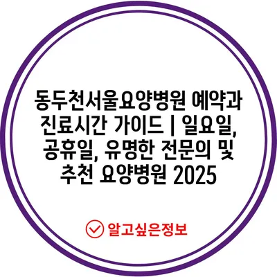 동두천서울요양병원 예약과 진료시간 설명서 | 일요일, 공휴일, 유명한 전연락 및 추천 요양병원 2025에 대한 내용을 소개합니다.