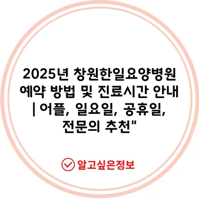 2025년 창원한일요양병원 예약 방법 및 진료시간 공지 | 어플, 일요일, 공휴일, 전연락 추천
