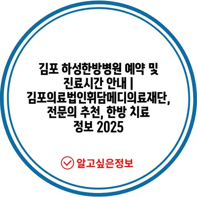 김포 하성한방병원 예약 및 진료시간 공지 | 김포의료법인휘담메디의료재단, 전연락 추천, 한방 치료 정보 2025