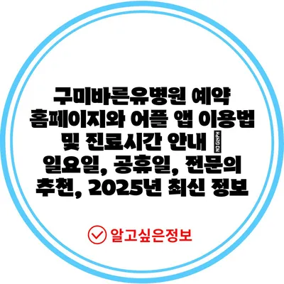 구미바른유병원 예약 홈페이지와 어플 앱 이용법 및 진료시간 공지 | 일요일, 공휴일, 전연락 추천, 2025년 최신 정보 에 대해 자주 묻는 질문 TOP 5