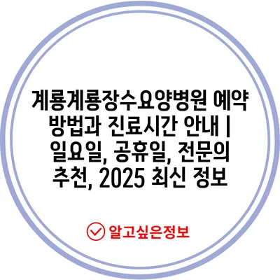 계룡계룡장수요양병원 예약 방법과 진료시간 공지 | 일요일, 공휴일, 전연락 추천, 2025 최신 정보 에 대해 자주 묻는 질문 TOP 5