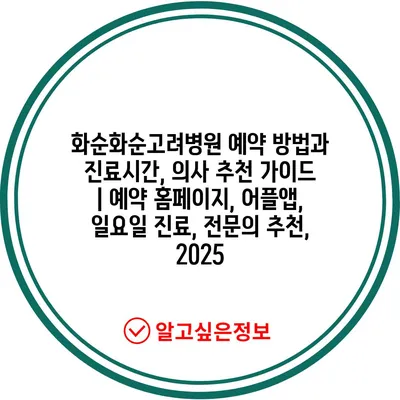 화순화순고려병원 예약 방법과 진료시간, 의사 추천 설명서 | 예약 홈페이지, 어플앱, 일요일 진료, 전연락 추천, 2025 에 대해 자주 묻는 질문 TOP 5
