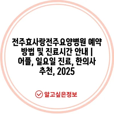✅ 전주효사랑전주요양병원의 예약 방법을 쉽고 빠르게 알아보세요!