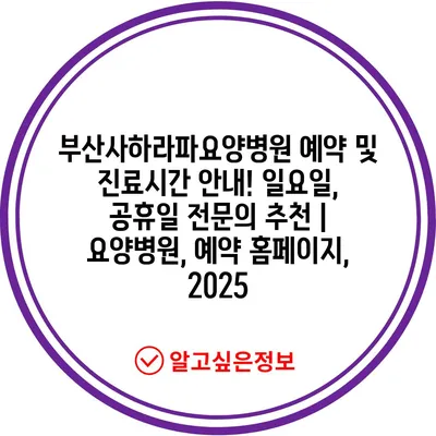 부산사하라파요양병원 예약 및 진료시간 공지! 일요일, 공휴일 전연락 추천 | 요양병원, 예약 홈페이지, 2025 에 대해 자주 묻는 질문 TOP 5