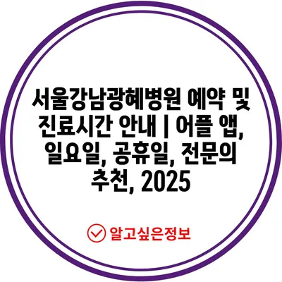 서울강남광혜병원 예약 및 진료시간 공지 | 어플 앱, 일요일, 공휴일, 전연락 추천, 2025 에 대해 자주 묻는 질문 TOP 5