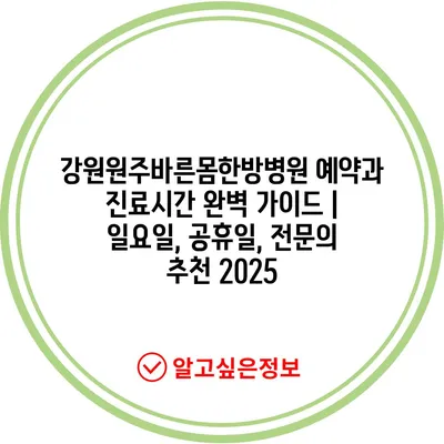 강원원주바른몸한방병원 예약과 진료시간 완벽 설명서 | 일요일, 공휴일, 전연락 추천 2025