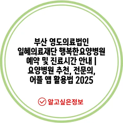 부산 영도의료법인 일혜의료재단 행복한요양병원 예약 및 진료시간 공지 | 요양병원 추천, 전연락, 어플 앱 활용법 2025 에 대해 자주 묻는 질문 TOP 5