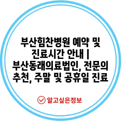부산힘찬병원 예약 및 진료시간 안내 | 부산동래의료법인, 전문의 추천, 주말 및 공휴일 진료
