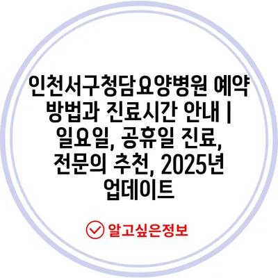 인천서구청담요양병원 예약 방법과 진료시간 공지 | 일요일, 공휴일 진료, 전연락 추천, 2025년 업데이트 에 대해 자주 묻는 질문 TOP 5