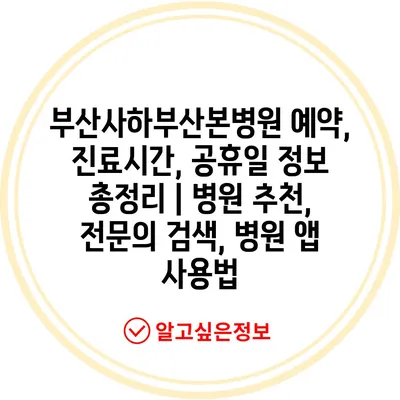 ✅ 부산사하부산본병원 예약 절차와 진료시간을 자세히 알아보세요.