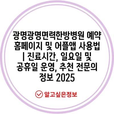 광명광명면력한방병원 예약 홈페이지 및 어플앱 사용법 | 진료시간, 일요일 및 공휴일 운영, 추천 전연락 정보 2025에 대해 알아보겠습니다.