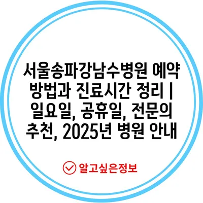 서울송파강남수병원 예약 방법과 진료시간 정리 | 일요일, 공휴일, 전연락 추천, 2025년 병원 공지 에 대해 자주 묻는 질문 TOP 5