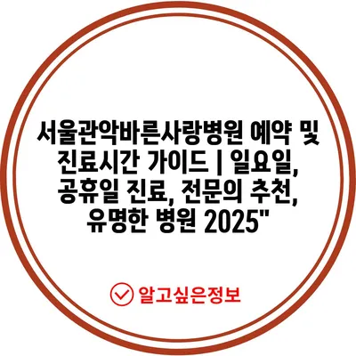 ✅ 서울관악바른사랑병원의 진료시간과 예약 방법을 지금 바로 알아보세요.