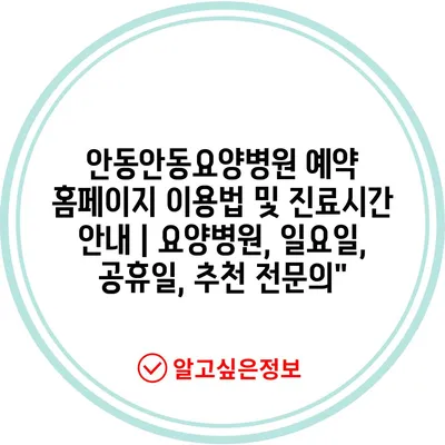 ✅ 안동안동요양병원 예약 방법을 지금 바로 알아보세요.
