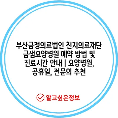 ✅ 천지의료재단 금샘요양병원의 예약 방법을 지금 확인해 보세요.