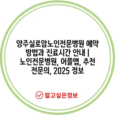 ✅ 양주실로암노인전문병원의 예약 방법과 진료 시간을 알아보세요.