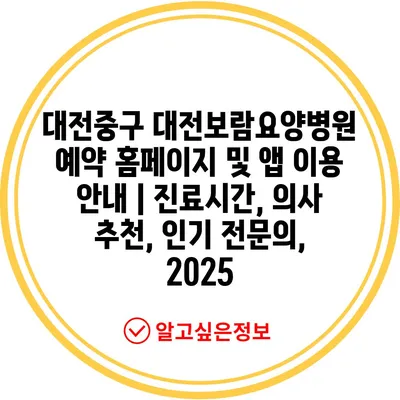 ✅ 대전보람요양병원의 예약 방법과 진료 시간에 대해 알아보세요.