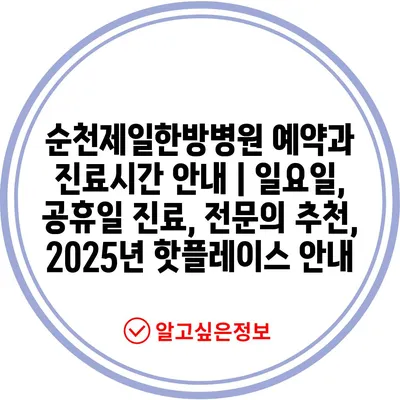 순천제일한방병원 예약과 진료시간 공지 | 일요일, 공휴일 진료, 전연락 추천, 2025년 핫플레이스 공지 에 대해 자주 묻는 질문 TOP 5