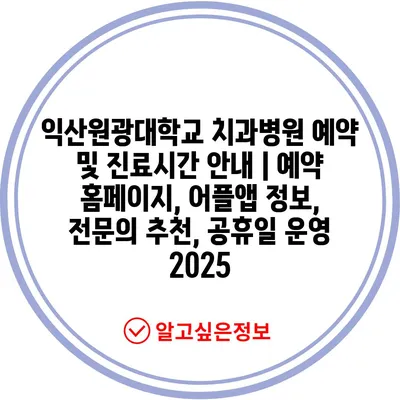 익산원광대학교 치과병원 예약 및 진료시간 공지 | 예약 홈페이지, 어플앱 정보, 전연락 추천, 공휴일 운영 2025에 대해 알아보겠습니다.