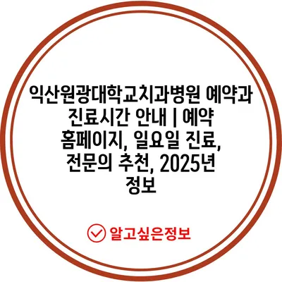 익산원광대학교치과병원 예약과 진료시간 공지 | 예약 홈페이지, 일요일 진료, 전연락 추천, 2025년 정보 에 대해 자주 묻는 질문 TOP 5