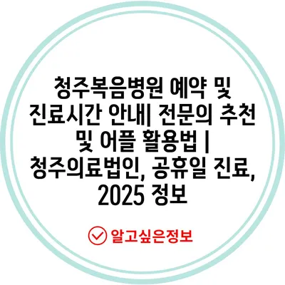 청주복음병원 예약 및 진료시간 공지| 전연락 추천 및 어플 활용법 | 청주의료법인, 공휴일 진료, 2025 정보에 대해 자주 묻는 질문 TOP 5