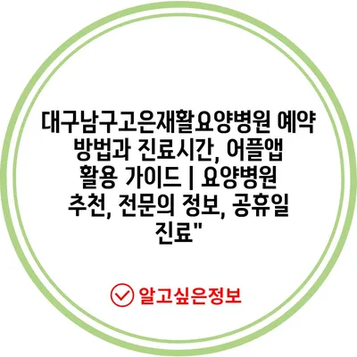 ✅ 대구남구고은재활요양병원의 예약 방법과 진료시간을 알아보세요.