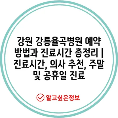 ✅ 강릉율곡병원의 진료시간과 예약 방법을 지금 바로 알아보세요.