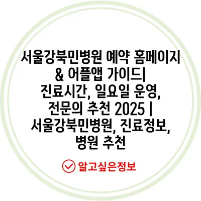 서울강북민병원 예약 홈페이지 & 어플앱 설명서| 진료시간, 일요일 운영, 전연락 추천 2025 | 서울강북민병원, 진료정보, 병원 추천