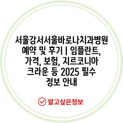 서울강서서울바로나치과병원 예약 및 후기 | 임플란트, 가격, 보험, 지르코니아 크라운 등 2025 필수 정보 공지