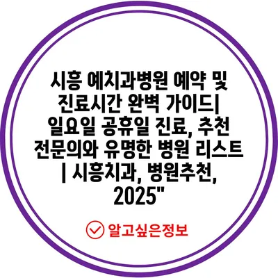 시흥 예치과병원 예약 및 진료시간 완벽 설명서| 일요일 공휴일 진료, 추천 전연락와 유명한 병원 리스트 | 시흥치과, 병원추천, 2025