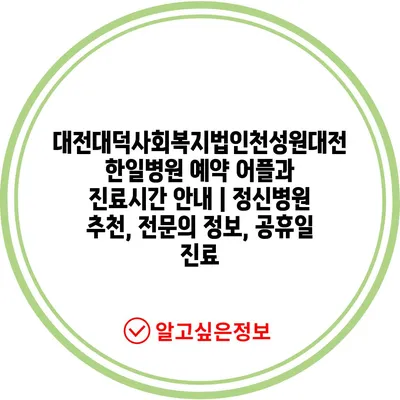 대전대덕사회복지법인천성원대전한일병원 예약 어플과 진료시간 공지 | 정신병원 추천, 전연락 정보, 공휴일 진료 에 대해 자주 묻는 질문 TOP 5