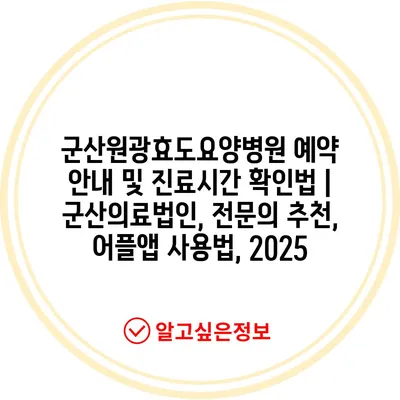 군산원광효도요양병원 예약 공지 및 진료시간 확인법 | 군산의료법인, 전연락 추천, 어플앱 사용법, 2025 에 대해 자주 묻는 질문 TOP 5