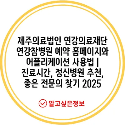 제주의료법인 연강의료재단 연강참병원 예약 홈페이지와 어플리케이션 사용법 | 진료시간, 정신병원 추천, 좋은 전연락 찾기 2025에 대해 알아보겠습니다.
