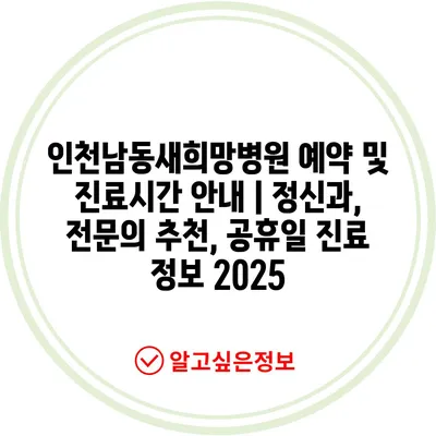 인천남동새희망병원 예약 및 진료시간 공지 | 정신과, 전연락 추천, 공휴일 진료 정보 2025 에 대해 자주 묻는 질문 TOP 5
