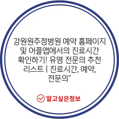 ✅ 강원원주정병원에서의 진료 예약을 쉽게 확인하세요!