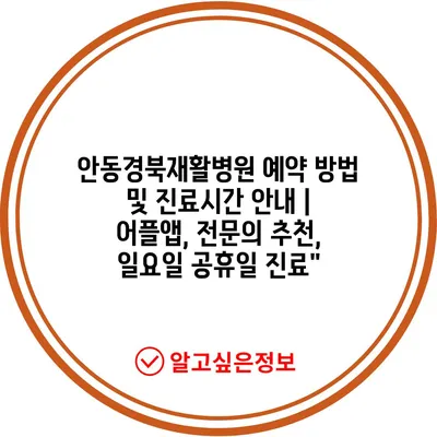 안동경북재활병원 예약 방법 및 진료시간 안내 | 어플앱, 전문의 추천, 일요일 공휴일 진료”
