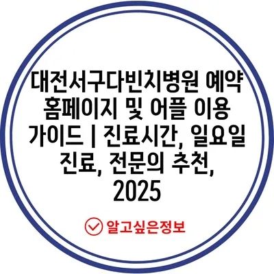 대전서구다빈치병원 예약 홈페이지 및 어플 이용 설명서 | 진료시간, 일요일 진료, 전연락 추천, 2025에 대해 자주 묻는 질문 TOP 5