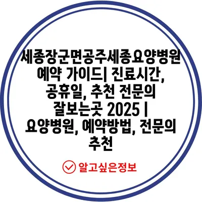 ✅ 세종장군면공주세종요양병원의 진료시간과 예약 방법을 지금 알아보세요.