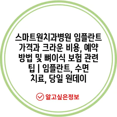 스마트원치과병원 임플란트 가격과 크라운 비용, 예약 방법 및 뼈이식 보험 관련 팁 | 임플란트, 수면 치료, 당일 원데이