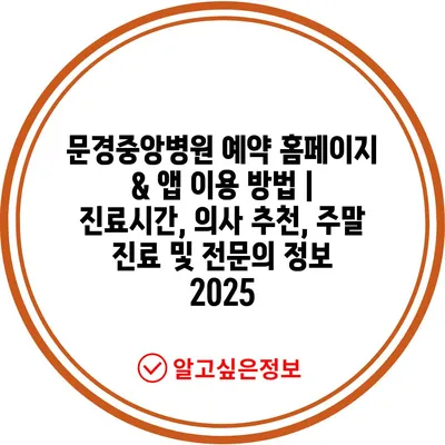 ✅ 문경중앙병원 예약 방법을 자세히 알아보세요.