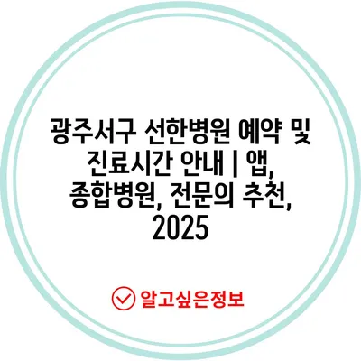 광주서구 선한병원 예약 및 진료시간 공지 | 앱, 종합병원, 전연락 추천, 2025 에 대해 자주 묻는 질문 TOP 5