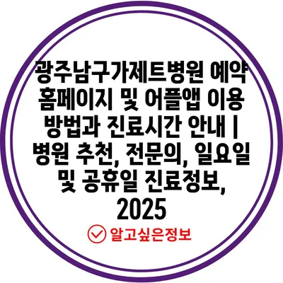 광주남구가제트병원 예약 홈페이지 및 어플앱 이용 방법과 진료시간 공지 | 병원 추천, 전연락, 일요일 및 공휴일 진료정보, 2025