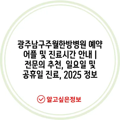 광주남구주월한방병원 예약 어플 및 진료시간 공지 | 전연락 추천, 일요일 및 공휴일 진료, 2025 정보 에 대해 자주 묻는 질문 TOP 5