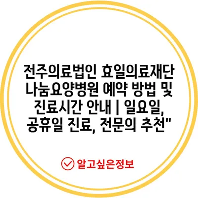 전주의료법인 효일의료재단 나눔요양병원 예약 방법 및 진료시간 공지 | 일요일, 공휴일 진료, 전연락 추천에 대해 자주 묻는 질문 TOP 5
